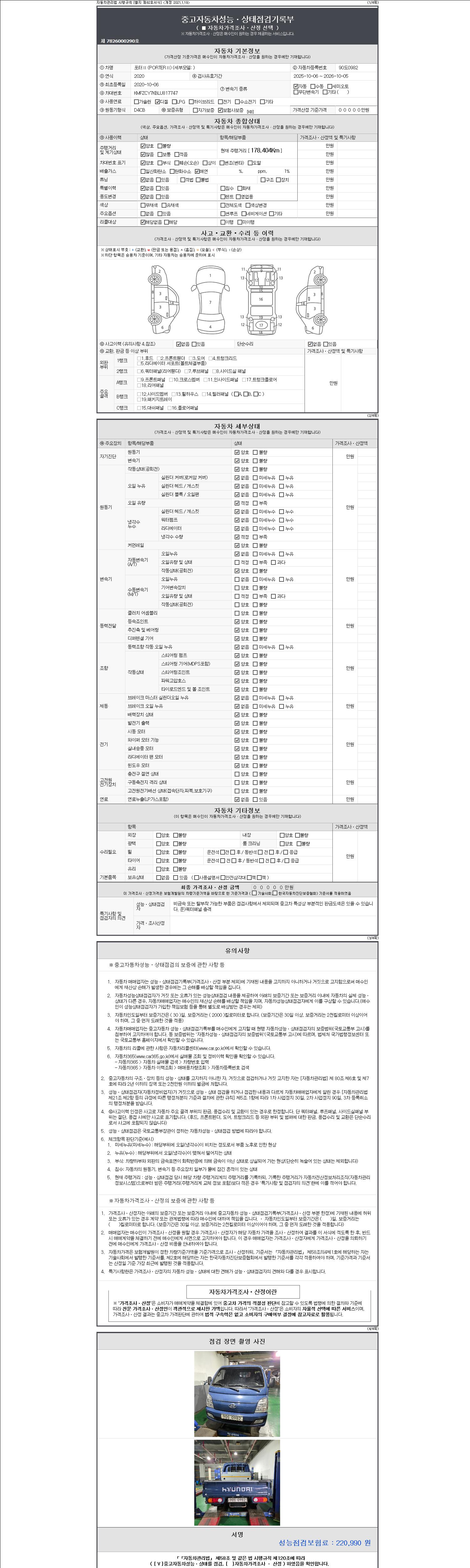 - 2. 차량 등록증이나 성능점검지 등을 상담자에게 요청및 확인하시고 사전에 미리 점검 하시기를 권유드립니다.