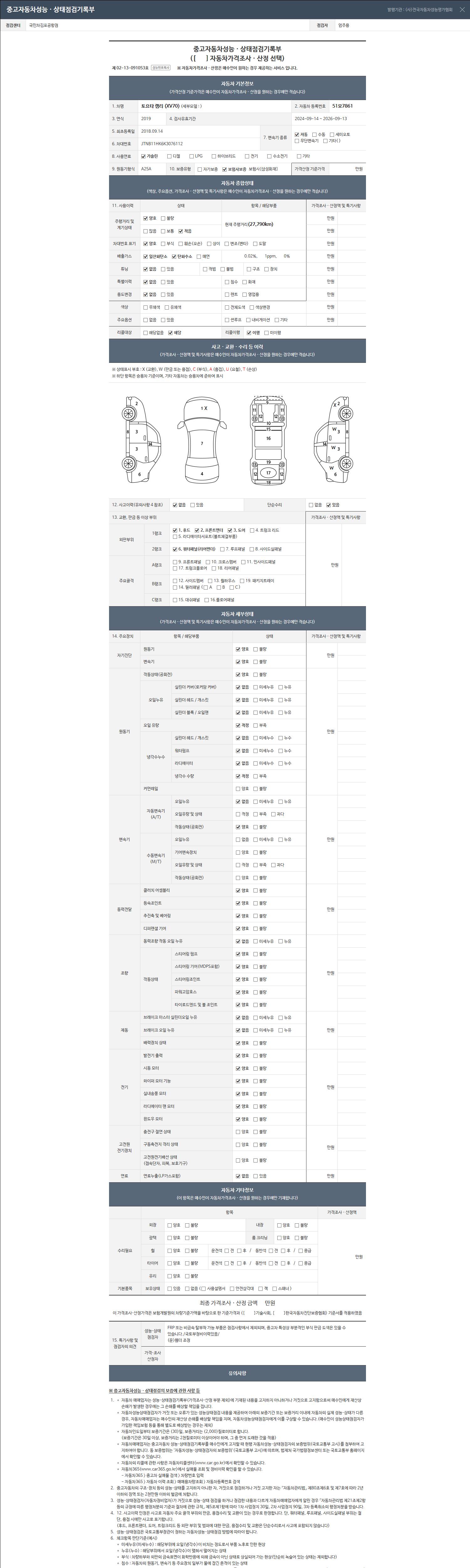 - 2. 차량 등록증이나 성능점검지 등을 상담자에게 요청및 확인하시고 사전에 미리 점검 하시기를 권유드립니다.