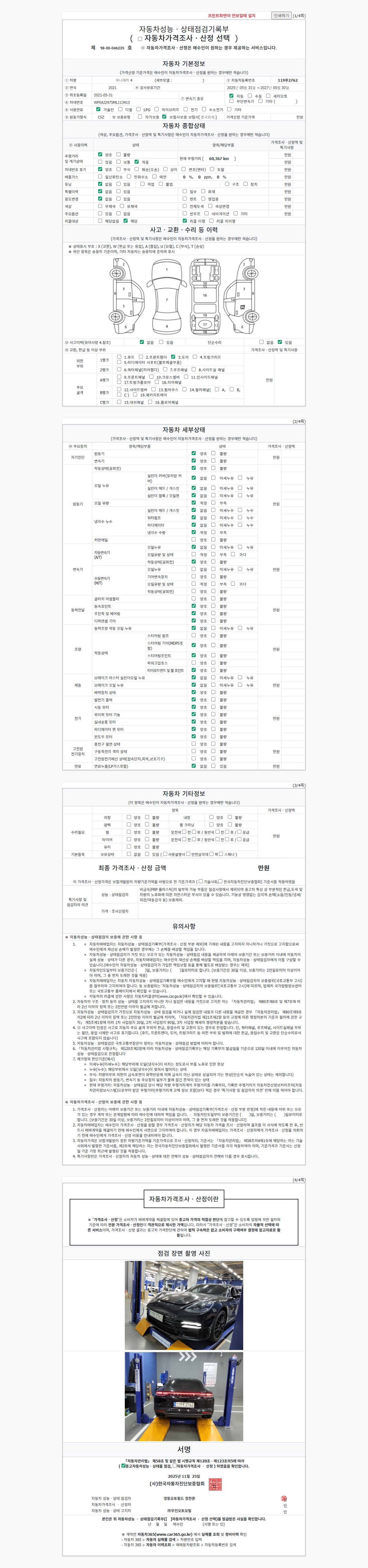 - 사고유무 : 성능기록부 참조