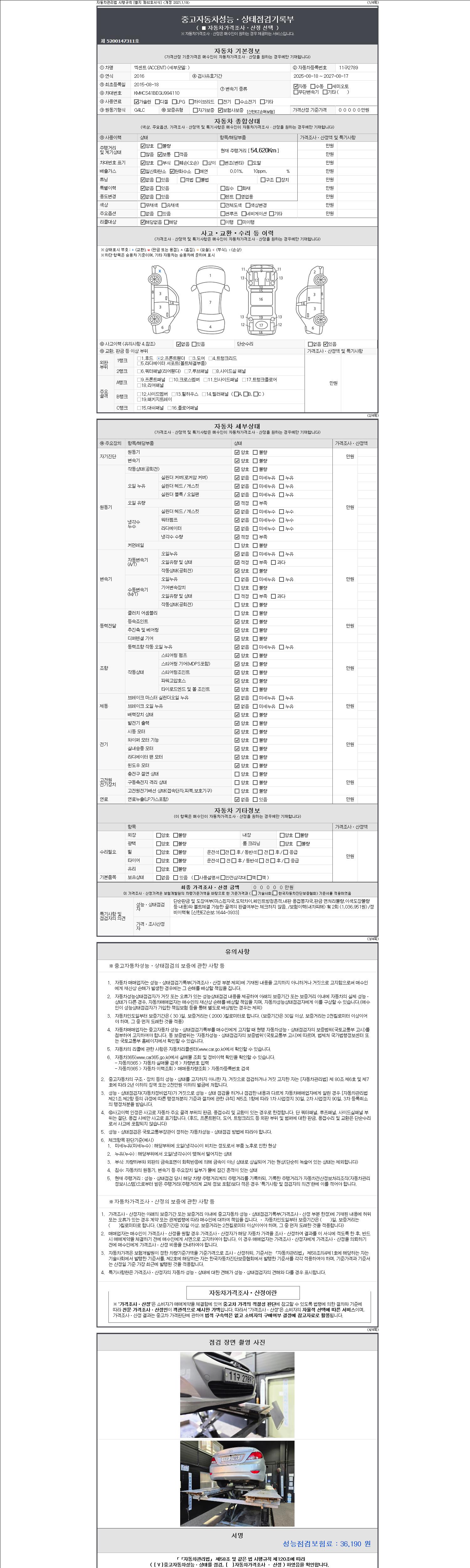 - 사고유무 : 성능기록부 참조