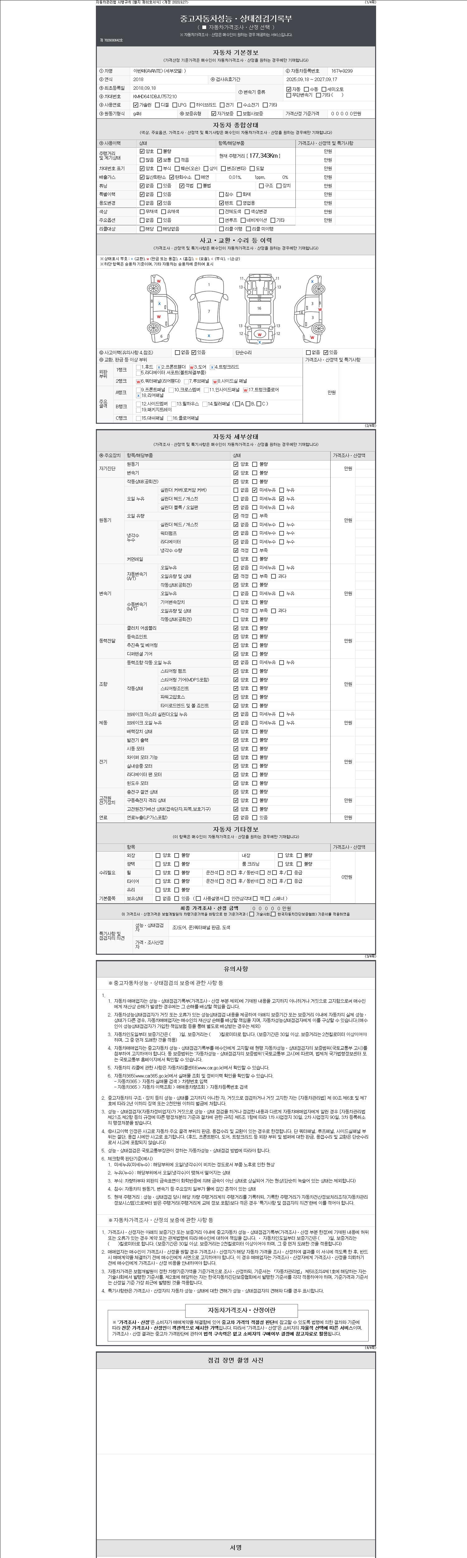- 2. 차량 등록증이나 성능점검지 등을 상담자에게 요청및 확인하시고 사전에 미리 점검 하시기를 권유드립니다.