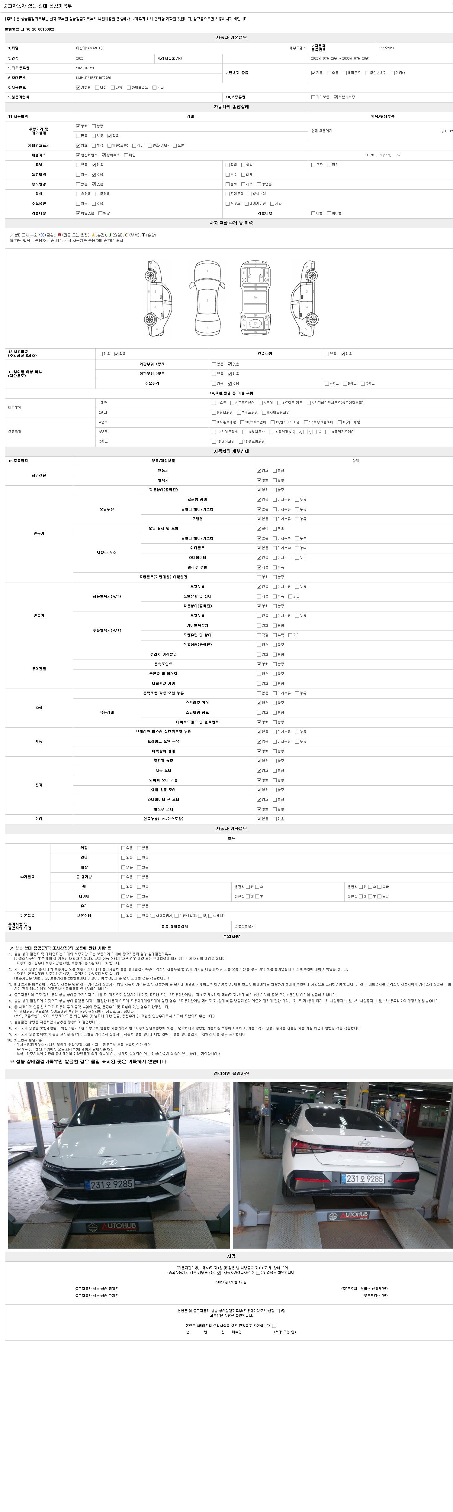 | 주행거리 | 6,061 km | 차량번호 | 231오9285 | 사고유무 | 성능기록부 참조 | 제시번호 | 제 2147483647 호 |