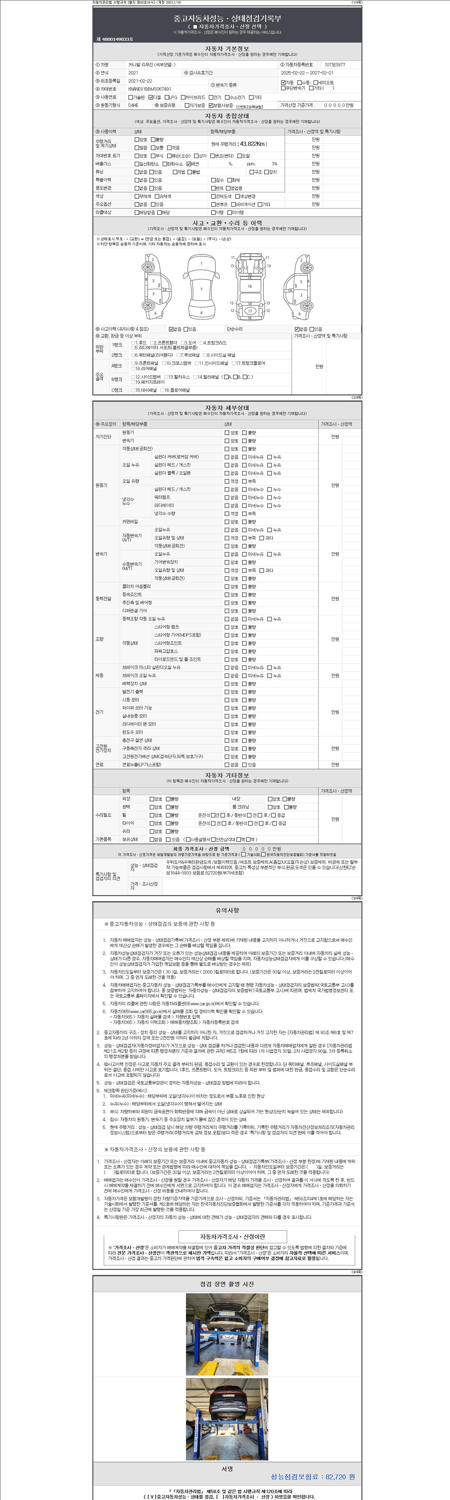 | 주행거리 | 43,822 km | 차량번호 | 107모3977 | 사고유무 | 성능기록부 참조 | 제시번호 | 제 2147483647 호 |