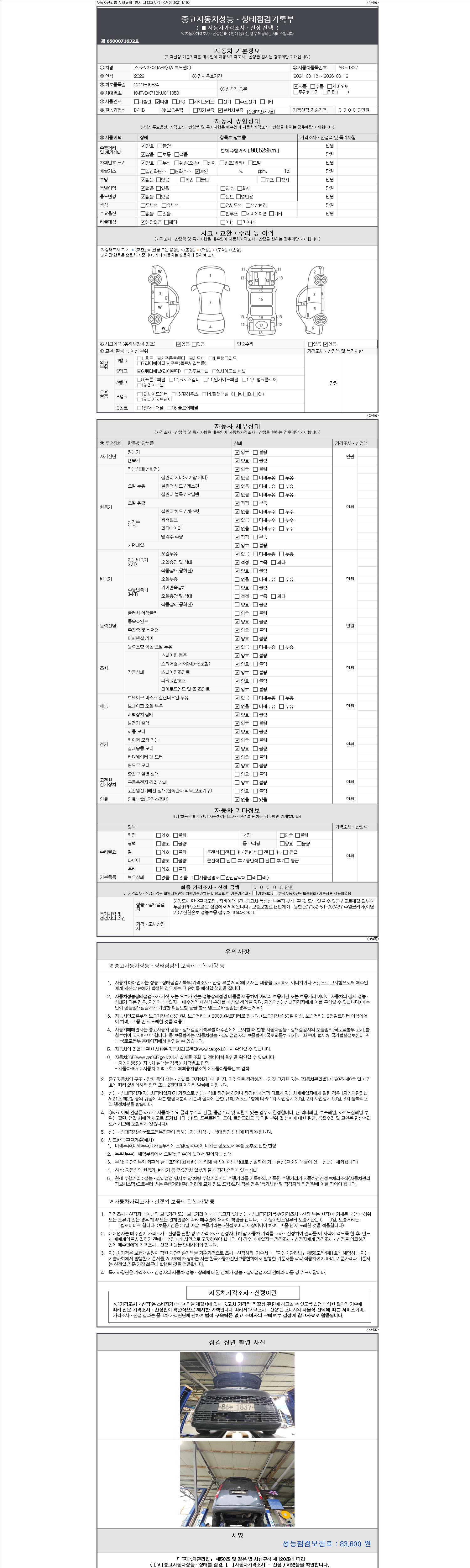 | 주행거리 | 98,529 km | 차량번호 | 86누1837 | 사고유무 | 성능기록부 참조 | 제시번호 | 제 2147483647 호 |