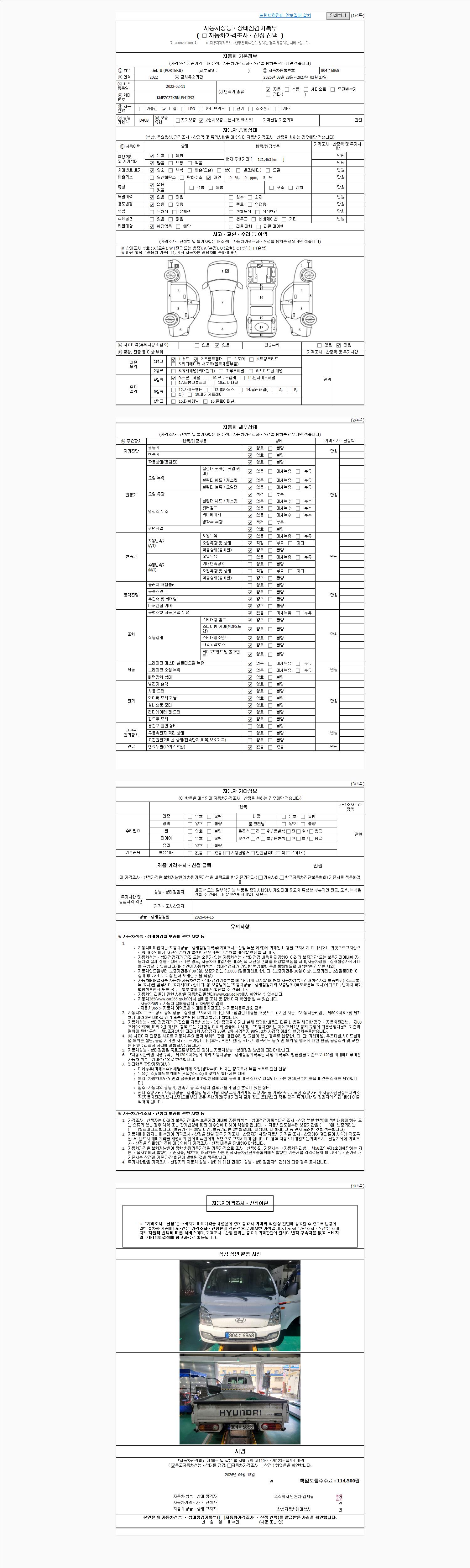 - 사고유무 : 성능기록부 참조